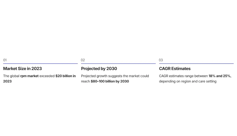 Recent estimates indicate the global RPM market exceeds $20 billion and continues to grow rapidly, with strong adoption in long-term care settings.