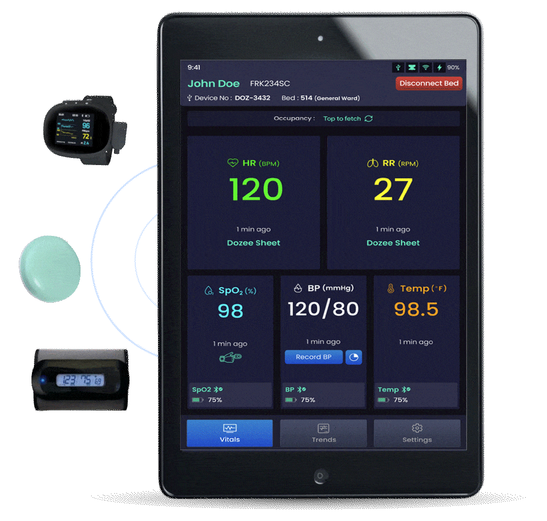 Our proprietarUsing advanced Ballistocardiography technology, Dozee detects subtle physiological shifts that may indicate early clinical deterioration.y under-bed sensor continuously tracks